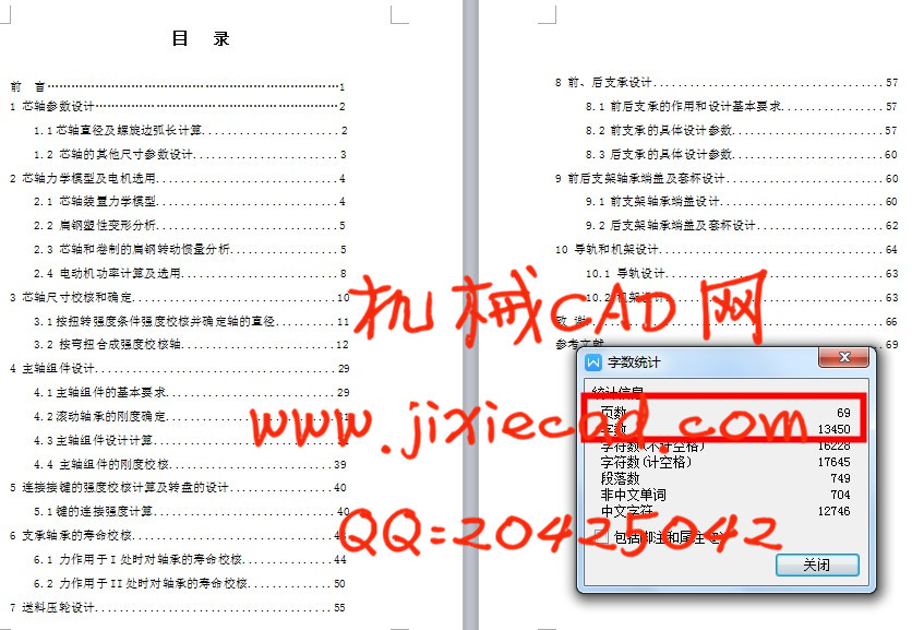 本设计主要对钻杆螺旋边卷绕机进行了较全面论述,了解了缠绕机的类型、发展现状。阐明了卷绕机的工作原理、组成及其特性。并根据螺卷绕机的工作原理、工作条件、工作要求等设计一卷绕机。在此过程中,经过对比结合,初步确定了合适的卷绕机结构形式。 在计算中,首先确芯轴的尺寸,然后通过对该尺寸计算校核,选择出其他部件的外形尺寸,再对其进行校核,确定是否能达到设计要求。 由于芯轴在卷绕过程中受力较复杂。本设计从这个问题出发,通过芯轴的动力学模型对其受力过程进行分析.同时,利用分析问题的结果再综合其他因素,最终选取合适的电动机、减速器和联轴器。接下来的设计包括对主轴组件的设计校核,对送料压轮的设计校核,对连接接键及转盘的强度校核,对支承轴的命、前后支架轴承端盖及套杯的设计和优化。