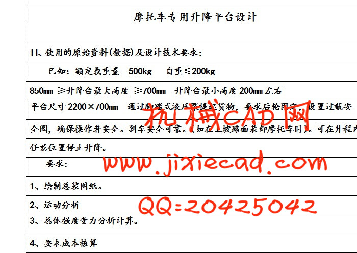 2.2 摩托车升降台机构设计时应注意的问题........................ (4)