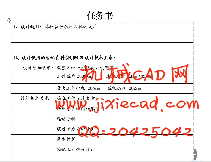 Abstract: This issue is to manually press ratchet design, working conditions for mechanical devices, designed to meet actual work requirements presses. Press design includes gear shaft, rack, cabinet design and some components such as the selection of check. In the design process, according to the press the mission statement to provide the length, width, height, stroke, etc., to complete the overall design of the press. Mainly to human-based, driven by gear rack movement, with the ratchet to achieve self-locking hand wheel back rack, which drive the main design components of each system, relatively simple structure, typical of the hand press