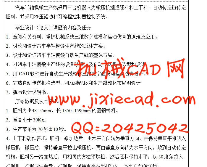 本文针对汽车半轴制造生产线的现状,根据目前国内外制造行业的新技术、新工艺,以解决现阶段半轴制造生产线落后、生产线效率低、坏境污染严重、工人劳动负荷大等的一系列问题为目标,设计出高效率、低成本的现代化生产线。本文对自动生产线的系统组成进行分析,提出工艺方案,并设计出各个单元的机械结构和整体布局。分析了各个系统的工作任务,由此来选择各个系统的设备,并且根据生产过程中的需要进行了送料设计形式分析;送料装置结构设计及一些主要零件计算;对输送链进行改造,设计了间歇传送机构及主要零件计算。