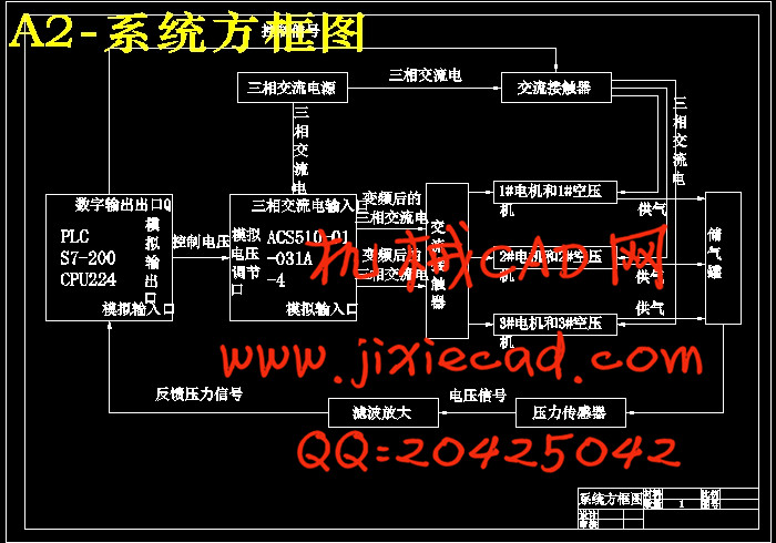 The design of coal mine gas storage tank as the control object, the system is mainly composed of 3 air compressors,1 frequency converters, PLC and linear remote pressure sensor and so on.PLC and linear remote pressure sensor and so on. PLC and linear remote pressure sensor and so on. The PLC, inverter, air compressor and pressure sensor composed of closed-loop feedback control system. The supply pressure constant. PLC according to the control of the air compressors operating state ( such as frequency operation, frequency operation, stop ), thereby controlling the compressor running numbers, in a wide range of control of gas pressure regulator control; inverter internal PID converter for variable frequency motor speed regulation, on a smaller scale control of gas pressure. Air compressor motor speed regulation with frequency conversion technology, the use of frequency converter speed control for air compressor.