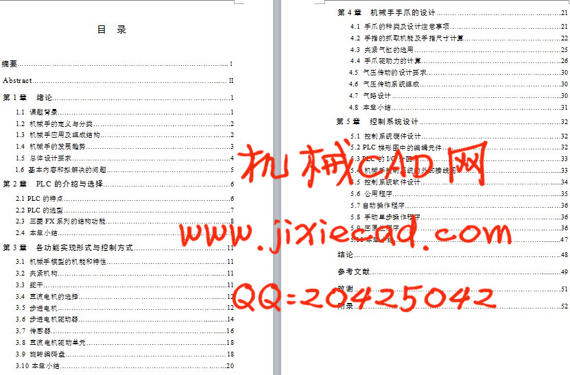 1.3 机械手应用及组成结构…………………………………………...…..2
