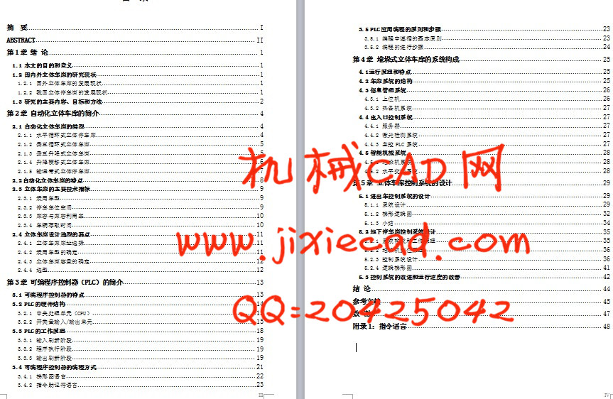 目 录自动化立体车库是集自动化技术、机器人技术、计算机技术为一体的智能化、立体化的物流储运系统,能够自动而可靠的完成车辆的存储以及相关信息的管理。对该系统的开发与研究,可以解决我国停车难的问题,具有非常大的理论意义和使用价值。