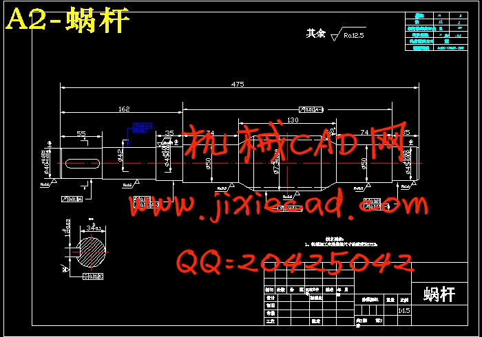 设计思路:(1)通过对单级蜗杆减速器工作状况和设计要求对其结构形状进行分析,得出总体方案(2)按总体方案对各零部件的运动关系进行分析得出单级蜗杆减速器的整体结构尺寸(3)以各个系统为模块分别进行具体零部件的设计校核计算,得出各零部件的具体尺寸(4)用Pro/E实体建模各个零件并形成总装配。