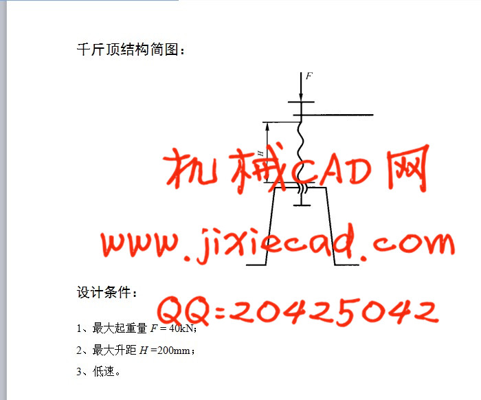 关键字:千斤顶 、螺旋传动、AutoCAD、Pro/E