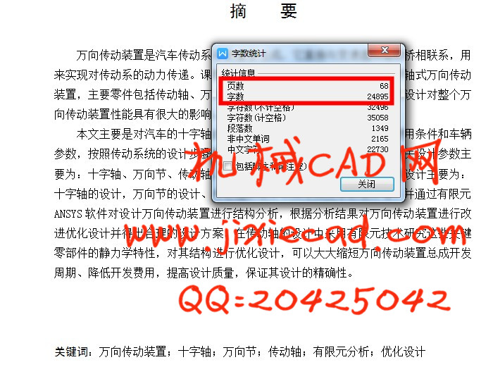 关键词:万向传动装置;十字轴;万向节;传动轴;有限元分析;优化设计