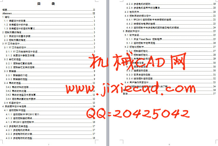 The hardware design is as follows: xy is the most typical industrial application in control of one object, Feedback measurement for photoelectric encoder. information processing and MPC2810 from the domestic music record Ltd (programmable controller by the multiaxial movement controller) finish, Exchange stepper motor selection, Software design includes: application software development platform choice, Based on the Windows system under control system development, VB control program development, Interface design, Interpolation procedure of design.