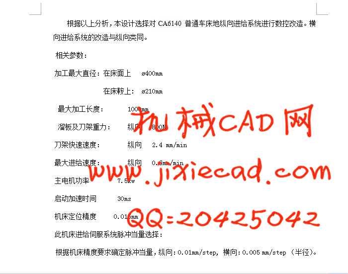 ( 5 )为了减少整个设备投资计划而进行数控改造。所有这些目的都围绕一点,即提高机床的性能价格比,用较少的价格得到较高的机床性能。为此,我们以普通车床CA6140为研究对象。