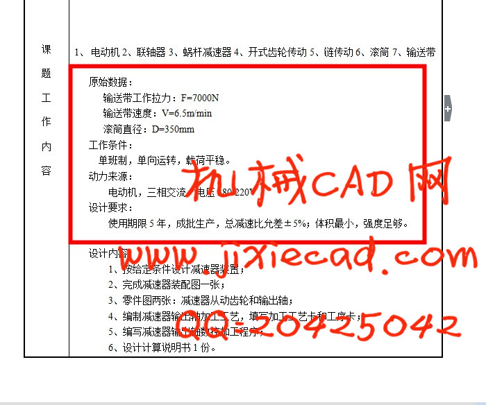 输送带工作拉力:F=7000N