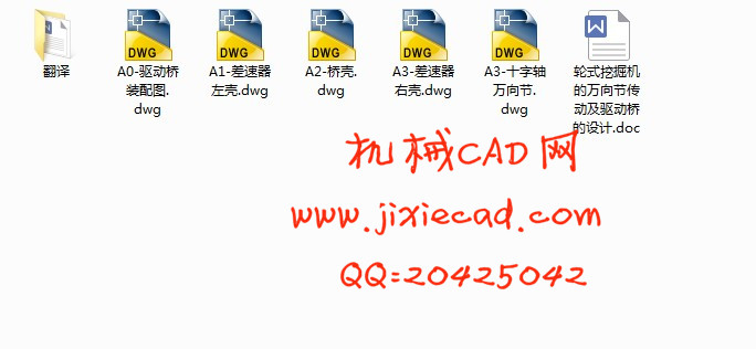 The design is the design of the universal joint transmission and drive axle wheel excavator, it is the end of the transmission system, passing a large torque, its work will have a direct impact on the work performance of the machine.The function of the drive axle of the main drive to change the torque in the direction of the rotation axis, a longitudinal engine torque to the transverse drive axle on both sides of the driving wheel. Change the direction of the force transmission through the main drive bevel gear final drive and the main transmission gearbox output shaft speed is reduced, increasing the torque; solve the differential left and right through the differential to reduce steering resistance and tire wear, which to assist steering. In addition, the drive axle housing also from the power transmission and load-bearing role.