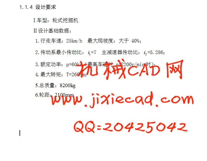 本设计是做轮式挖掘机的万向节传动及驱动桥的设计,它处于传动系统的末端,传递较大的转矩,其工作的好坏直接影响到整机的工作性能。驱动桥的功用是通过主传动来改变转矩旋转轴线的方向,把纵置发动机的转矩传递到横置驱动桥两边的驱动轮上。通过主传动的锥齿轮改变传力方向,通过最终传动和主传动将变速箱输出轴的转速降低,增大转矩;通过差速器解决左右差速问题,减小转向阻力和轮胎磨损,从而协助转向。此外驱动桥壳还起传力和承重作用。