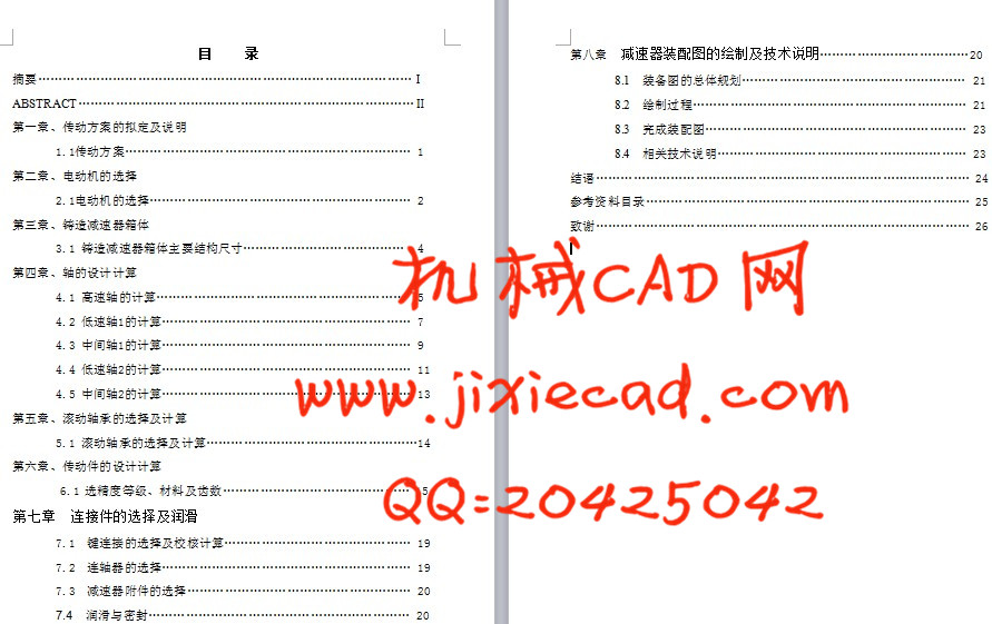 7.3 减速器附件的选择……………………………………………… 20