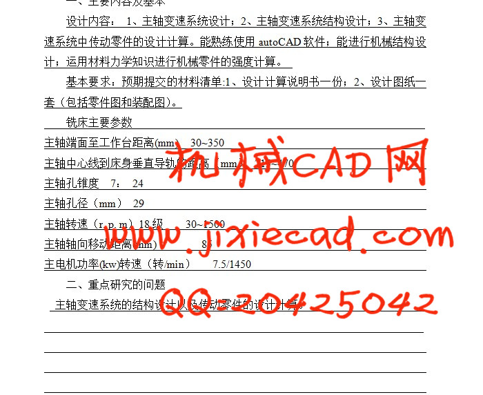 摘要 立式铣床主轴变速系统是一种将一个转速输入,经过变速输出多个转速来满足需要不同转速的要求。这种系统广泛应用于各种机床的主传动系统和进给系统之中。C箱体传动系统设计包含机械原理,机械设计,机械制造基础,材料力学等课程的内容。本次设计任务主要是完成主轴变速箱的设计,包括齿轮设计计算、轴的设计计算和轴承的寿命校核及箱体的结构设计。本次设计的C箱体传动系统是用于立式铣床主传动系统中。