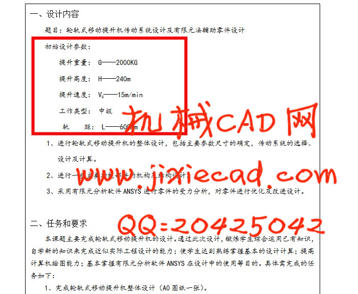 轮轨式移动提升机传动系统设计及有限元法辅助零件设计