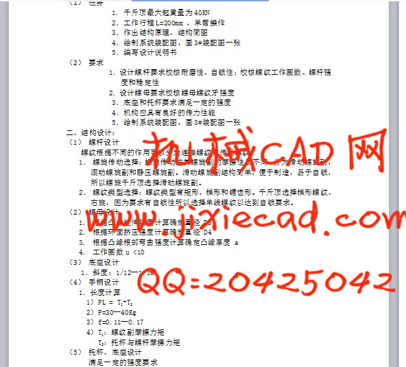 ①、作出千斤顶的结构原理、结构简图、组成、受力分析。
