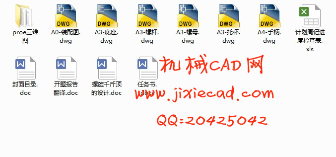 本次设计中,我首先查阅了大量资料,确定了将要设计的千斤顶结构,了解了零件的组成,和运行原理,然后通过计算得出了结构数据,再通过CAD作出相关图形,使用PROE作出三维图,再进行了运动仿真,进而得出成果。