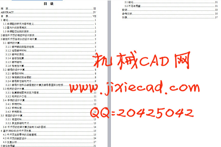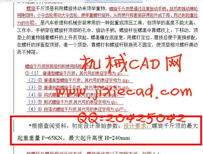 关键词:机械设计;螺旋千斤顶;设计计算;运动仿真。