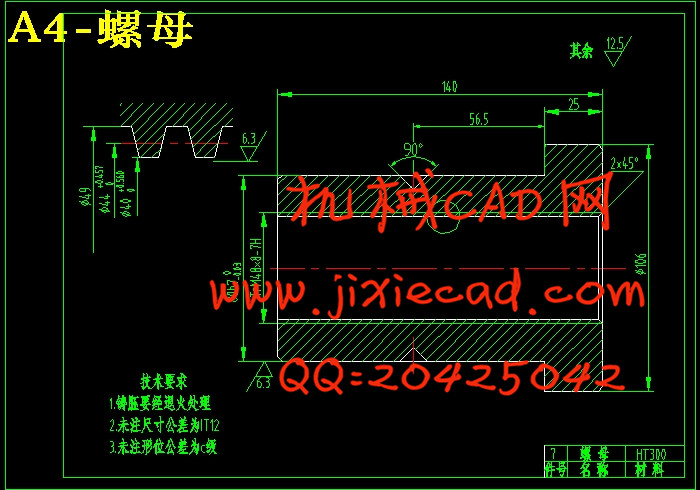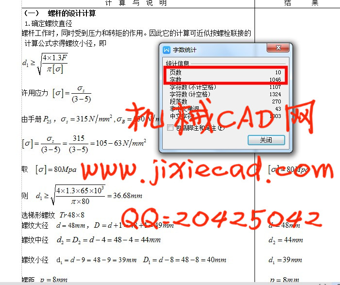 设计原始参数:螺旋千斤顶的最大起重重量65X10*5N,最大起升高度H=190mm