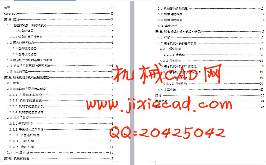 第4章 联合机伐木机构的结构研究……………………………………………………17