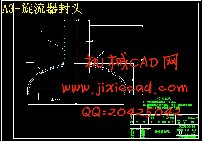 【摘要】旋流分离器,是一种利用离心沉降原理将非均相混合物中具有不同密度的相分离的机械分离设备。在具有密度差的混合物以一定的方式及速度从入口进入旋流分离器后,在离心力场的作用下,密度大的相被甩向四周,并顺着壁面向下运动,作为底流排出;密度小的相向中间迁移,并向上运动,最后作为溢流排出。这样就达到了分离的目的。旋流分离技术可用于液液分离、气液分离、固液分离、气固分离等。本文设计的旋流器用于石油钻井中钻井液的气液分离。在工作原理的基础上,进行了气液分离器的结构设计,包括,总体结构、脱气结构、内部旋流器结构、外筒体结构以及分离器外部结构。根据相关数据对进口管、排气排液管、侧开口、以及相对应的法兰进行设计选取。并且进行了筒体和封头壁厚的计算,估算了分离器的质量,支座的负荷估算及选用,人孔的选用及补强,对外壳体进行了有限元的分析,说明了分离器的安装顺序。