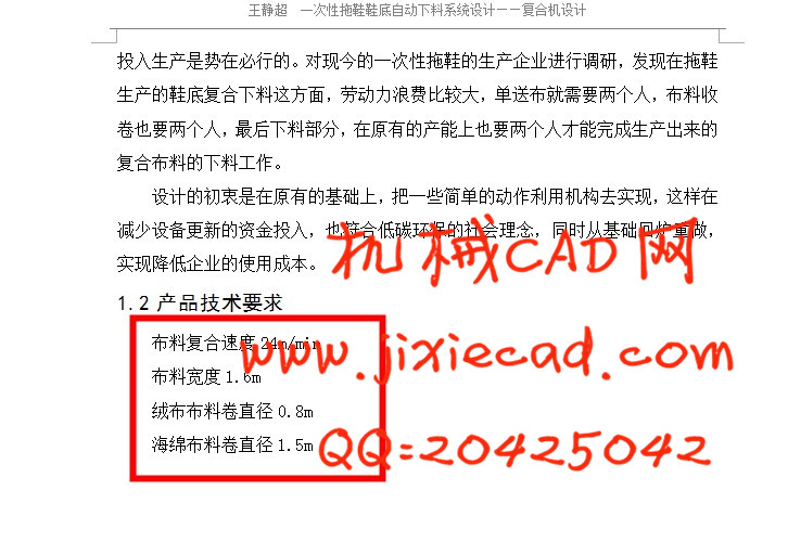 一次性拖鞋市场前景良好,所以企业对生产设备自动化提出了要求。要求在不减速产能的同时尽量减少工人的人数,而且产品的质量也要提高。所以我们在布料的上料时采用针板定型,在张力控制上我们选择磁粉离合器来控制。并且复合后在去除应力后不在像以前那样进行收卷工作,而是直接的进行下料工作。这样节约了更多劳动力,但是对复合下料机的设计提出了严苛的要求。