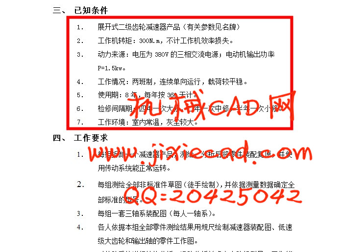 2. 工作机转矩:300N.m,不计工作机效率损失。