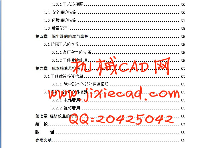 在本设计中,不但完成了对除尘系统总体的设计,而且强化细节,做到了所设计的除尘系统可以直接进行 加工、安装、调试并投入使用。并对成本进行了投资预算.对所要的材料都进行了全部的统计。