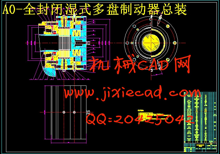 湿式多盘式制动器的壳体通过螺栓联结在桥壳上,壳盖套在轮毂外,制动器的右端采用浮动油密封。这样在制动器箱体中间形成一个密闭的腔体,里面装配有制动盘、制动活塞以及摩擦片。半轴则通过轮毂的配合连接到摩擦片使其旋转和轴向移动。制动活塞可沿轮毂外花键作轴向的往复运动:重复完成压向、离开制动盘的操作,实现制动、解除制动的功能。本文所列举的制动器的液压控制是一个反向控制系统:当活塞腔内进入液压油时,制动活塞压缩弹簧,使活塞与制动盘、摩擦片之间的压力减小至消失而相互分离,摩擦力矩消失,解除制动;当活塞腔卸油时,回位弹簧将制动活塞退回,使制动活塞压向制动盘,从而是制动盘与摩擦片压紧,产生很大的摩擦阻力矩实现制动。压缩弹簧、隔套和挡圈、螺栓组合在制动释放时起到使制动活塞返回的作用,衬套、隔套和挡圈、螺栓组合起到调整活塞与制动盘之间间隙的作用。