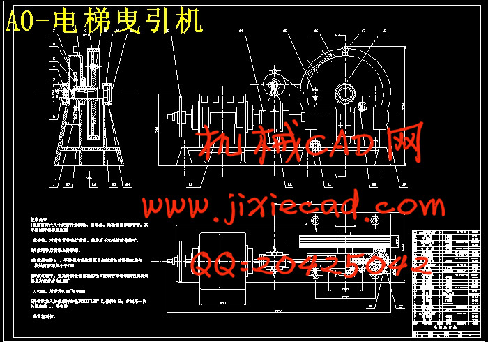 Elevator traction machine mainly by the traction rope, motor, reducer, traction wheels, brakes and coupling components. The operating speed of the elevator and load the selection of motor and brake. The design of the traction rope, first choose a traction rope around the law, then the forces it to choose the number of the traction rope and cross-sectional area. Reducer is the main part of the design, according to motor speed, lift speed, traction wheel gear design parameters such as diameter. Lift is the use of traction on the rim of the traction rope friction groove transmit power, it must design and wear-resistant surface friction coefficient of the traction wheel. Rigid coupling used to ensure the transfer of power, but requires moderately high on both axes.