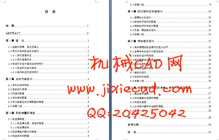 在玉米分段收获时,玉米手工剥皮工序劳动强度大,费工时和误农时,且影响玉米的产量和质量,针对我国玉米收获后剥皮这个重要环节,设计出场上玉米剥皮机,它替代了传统人工剥皮的紧张劳动,减轻了人们的劳动强度,提高了劳动效率,有效地防止了因剥皮不及时而造成的玉米霉烂的损失,从而给农民带来了一定的经济效益。本设计采用3对辊机型,在满足剥净率大于95%,工作效率达到1500kg/h以上的设计要求的前提下进行设计,可满足不同用户的需求,同时该机结构简单,调整方便可靠,采用电动机作为动力。为满足设计要求,主剥皮装置中的剥皮辊采用螺旋铁辊和橡胶辊组合的玉米剥皮辊,并且两辊高低配置,且可以根据玉米棒的大小不同,通过弹簧调节两辊间的距离。这避免了传统设计方法中铸铁辊对玉米籽粒的损伤,而且在结构上比传统设计的更加合理。经过设计、计算、校核,该机符合设计要求,并且剥皮装置较传统的传动系统有所改进,更适合在广大农村推广使用。关键词:玉米;剥皮机;螺旋铁辊;橡胶辊;农业机械