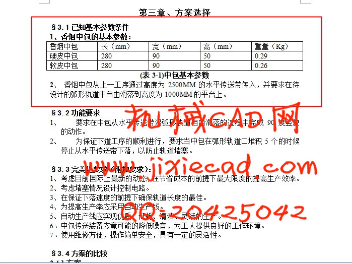 本设计为香烟中包包装机中的一部分,其主要任务是当香烟中包从上一工序——中包远距离水平传送过来后,下落至倾斜放置的弧型转角机构中,中包在弧形轨道实现平滑下落,下落落差为1500MM,并渐进实现中包由水平卧放转90度实现竖直放置,并要求中包在弧形轨道堆积到五包时后面的中包下落应停止,以防止轨道堵塞。此设计的主要功能是实现中包的转角,为后面的工序及中包的打包提供良好的条件。