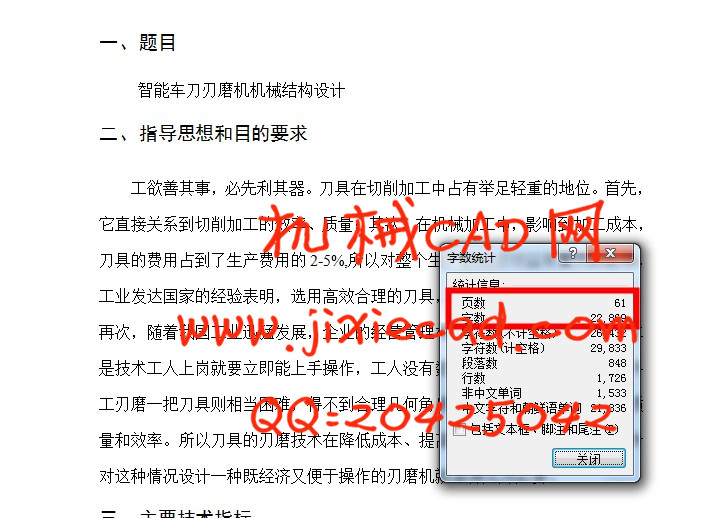 本次设计就是为了解决生产当中企业和工人的实际问题。首先对车刀的刃磨展开研究,通过调研、分析、类比、论证。最终设计一种智能化、自动化的刃磨机械,以满足实际生产需要。本次设计的智能车刀刃磨机就是机电一体化产品,我们方案就是要实现机械设计和控制电的结合,满足设计要求。所以在机械原理及结构设计的前提,决定利用微控制器-单片机,实现对其自动控制,减轻使用人员的辅助工作,从而达到智能化。车刀刀刃磨技术及控制研究的目的就是提车刀的刃磨质量,降低制造成本提高生产率;通过对车刀刃磨的控制研究,实现对车刀的自动刃磨和重磨,减工人的劳动强度,及时满足生产的需求。本设计主要先了解车刀的角度及几何数,根据这些设计出数控车刀刃磨装置的结构设计以及利用单片机来控制机构运行实现车刀的刃磨。