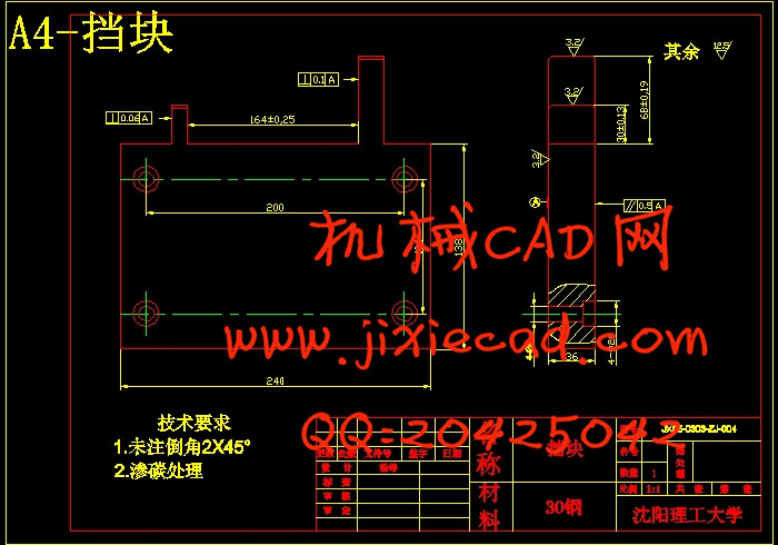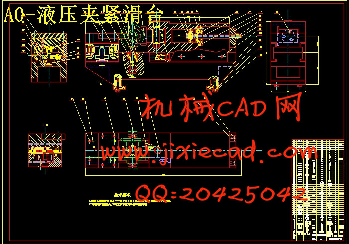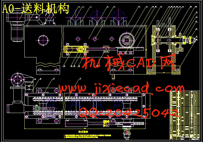 设计送料机构时,采用液压缸压力驱动,链条链轮、齿轮齿条传动,实现传送工件的目的;设计液压夹紧机构时,采用液压缸压力驱动,齿轮齿条传动,实现滑台两侧同时对工件夹紧;设计控制部分大采用C60P型PLC,对机构所要求的功能进行控制,并注意急停、保护部分。