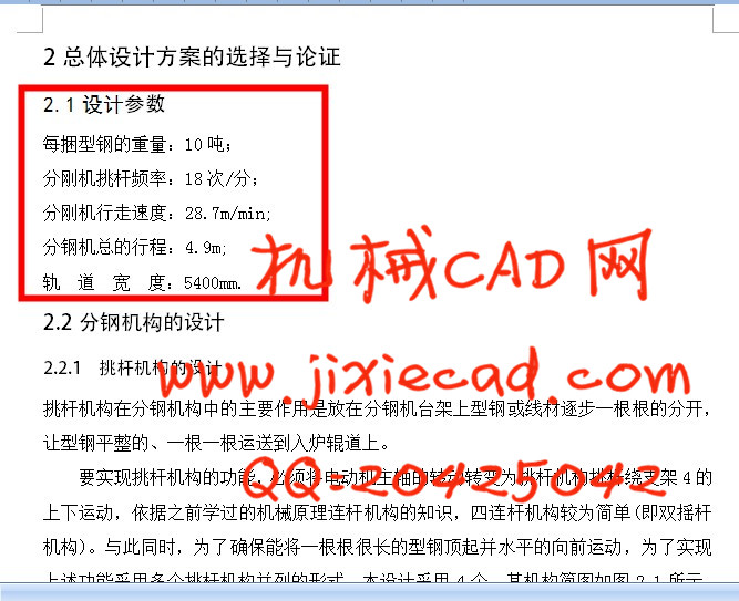 国内轧钢车间使用的分钢机构目前大都存在一些不足,简单的对引进分钢机构进行介绍,尤其是对引进分钢机的系统工作原理及构造展开研究,把国内分钢机和引进分钢机展开对比,对比出影响当今轧钢厂生产效率的原因,从而符合国内市场变化的需求,减少分钢机钢机存在一些缺点,避免设备事故及人身安全隐患。分钢机应用在冶金行业上,是连续性生产线上重要的机械设备,分钢机构是轧钢厂的重要辅助设备,可以减少人工,从而减少费用,而且提高了效率,是我国轧钢厂实现自动化的重要一环节,分钢机的作用是将上一步的成捆的线材和型钢一个一个的分开,让后放入辊道上进行下一步的处理,从入炉辊道送进加热炉,分钢机构主要由分钢机构和行走机构两部分组成,分钢机主要实现了将钢坯分开和将钢坯移动到下一步工序的作用,分钢机应用于钢铁行业生产产生了巨大的经济效益和社会效益,发展推广潜力巨大。此次分钢机的设计,运用了很多机械方面的专业知识,如:材料力学,机械设计,机械设计指导书,机械设计手册等材料,本论文包括分钢机的分钢机构设计和行走机构设计,电机的选择,轴减速器等的选择与校核等。最终设计的分钢机,能够实现分钢的要求,保证钢坯表面不被划伤,光滑,冲击小,延长使用寿命,轴承等零件的润滑等。随着我国钢铁行业朝着自动化水平发展,分钢机的研究是非常重要的。