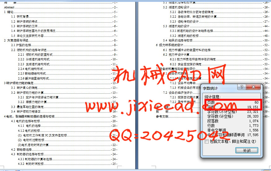 转炉设备中,倾动机械是实现转炉炼钢生产的关键设备之一,炉体的工作对象是高温的液体金属,在兑铁水、出钢等项操作时,要求炉体能平稳地倾动和准确的停位。为获得如此低的转速,需要很大的减速比。转炉炉体自重很大,再加装料重量等,整个被倾转部分的重量要达上百吨或上千吨。转炉倾动机械的工作属于“启动工作制”。机构除承受基本静载荷作用外,还要承受由于启动、制动等引起的动载荷。这种动载荷在炉口刮渣操作时,其数值甚至达到静载荷的两倍以上。转炉倾动机械随着氧气转炉炼钢生产的普及和发展也在不断的发展和完善,出现了各种型式的倾动装置。本设计为带有扭力杆缓冲止动装置的全悬挂式倾动机械,扭力杆可以缓冲转炉倾动时产生的载荷和冲击,而且对耳轴不产生轴向力。本设计的主传动系统为四个对角线布置的一次减速机带动一个位于其中心的二次减速机,从而带动整个转炉进行回转工作。每一台一次减速机的输入轴由一个直流驱动电动机带动工作,四台一次减速机借助其法兰盘凸缘固定在二次减速机的外壳上,在其输出轴上安装的小齿轮与安装在耳轴上的悬挂大齿轮相啮合,组成二次减速机。关键词:转炉,倾动机械,倾动装置
