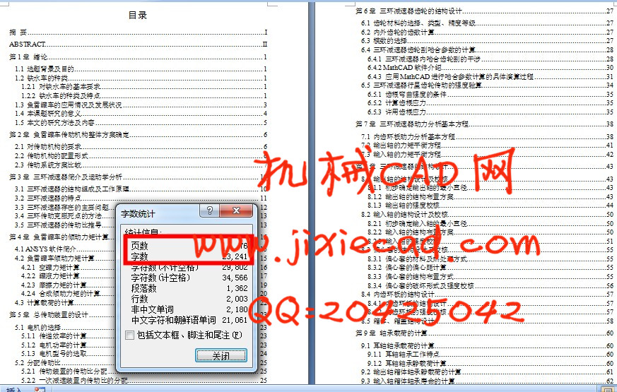The torpedo tanker is the dedicated hot metal transport vehicles which is used for transporting iron to the steel cans tipping station of iron and steel enterprise, and it has replaced the traditional hot metal car. It can complete the process of dephosphorization and desulfurization on way of transportion, thereby reducing smelting time and the cost of smelting. So it is a highly efficient and advanced equipment of the smelting process.In order to operate the torpedo tanker normally, it is needed to use a three-ring reducer to make the main drive system highly. In this paper, the working principle of three-ring reducer is described and the calculating formula of the transmission ratio is derived. I use the ANSYS software to calculate the tipping torque of the torpedo tanker, and get the synthesis torque. When taking into account of restrictions such as coincidence degree and tooth profile overlap interference in designing the little difference gear teeth, the paper uses the differential approximation method to get the coefficient of the internal and external gears by MathCAD software. The bending strength of gear is checked, and the result show that both of the inner and outer gear are to meet the bending strength of the tooth root. I make the basic equation of dynamic analysis of three-ring reducer and the force analysis of the gear ring plate, output shaft and input shaft. I make structural design of parts of the three-ring reducer, all of them meet the strength requirements. I draw the main parts of three-ring reducer by SolidWorks software. Considering the rotational speed of output shaft is very low,I calculate the static load of trunnion bearings and bearing of output shaft of the box, and they satisfy the conditions of static load. The life of input shaft bearing of the box is calculated, and I get a very long life and there is no need to replace it. Through the calculation of transmission efficiency, I know that transmission efficiency is very high.