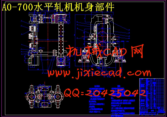 This design to the level of 700 rolling mill main drive structure. Main drive system of steel rolling is mainly composed of motor, reducer, gear, shaft coupling and frame. This design is carried out on the level of 700 rolling mill main drive system design, including motor, reducer, coupling and frame, through the calculation of rolling force can parameter and intensity analysis of the parts to complete the design content. Considering the cost problem, motor with low cost high speed of ac motor. In the process of design, we should consider the practicality, manufacturing difficulty, economic factors and problems encountered in the actual production. Gear stand: used to transfer torque to work roll, the design USES two equal diameter cylidrical herringbone gear in the vertical plane in a row, packed in the sealed enclosure. Coupling: the gear reducer and connecting shaft of a secure connection. The main coupling with plum blossom joint shaft coupling in general.