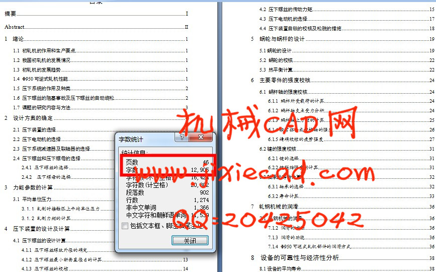 摘要 IWith the rapid development of the world economy, market demand for iron and steel with the increase, of quality requirements are also constantly improve rolling production, blooming mill is irreplaceable, blooming mill plays a very crucial role, and in blooming mill, the pressure system device is particularly important. In this paper, the design of the is Phi 950 reversing mill pressure system. In this paper we introduce the bloomingmill development situation and development trend, understand the main drive with 950 reversible rolling mill, considering blocking screw, determine the choice of the 950 reversible rolling mill press down system, the section size of phi 950 billet rolling table and calculating rolling force, pressure system determine the appropriate motor, reducer, coupling, and some important parts of the system under pressure, pressure screw and nut size under pressure, through the calculation of the pressure screw and nut pressure check, in addition, the design of suitable worm size, the analysis of mechanical equipment lubrication, environmental protection, and economic.