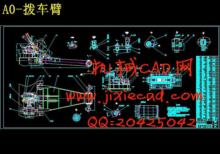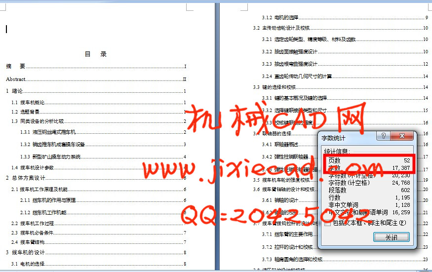 火车车厢用推车机亦称拨车机或推车机,是翻车机卸车线成套辅助设备之一,采用活动配重式拨车臂俯仰机构,用于牵引重车列和将一辆或两辆矿车推入翻车机内进行翻卸,同时将翻车机内的矿车顶出。拨车机是实现翻车机系统高效自动化的关键设备,可用来拨送多种铁路敞车,并使其在规定的位置上定位,以便翻车机完成翻卸作业。本文根据设计要求制定了设计方案,对拨车机机构进行了结构设计,并对其内部主要零部件进行了设计、选择和强度计算,内容包括主电动机功率的选择,齿轮、键、联轴器、车轮、销轴、拨钩拉杆、液压缸以及弹簧的设计和校核,同时还阐述了润滑的方式、方法以及润滑剂的选择等。本套拨车机结构合理、成本低廉、且便于安装和维护,可广泛应用于码头、钢厂、电厂、焦化厂等大型企业散装物料输送系统上。关键词:拨车机;翻车机;拨车臂