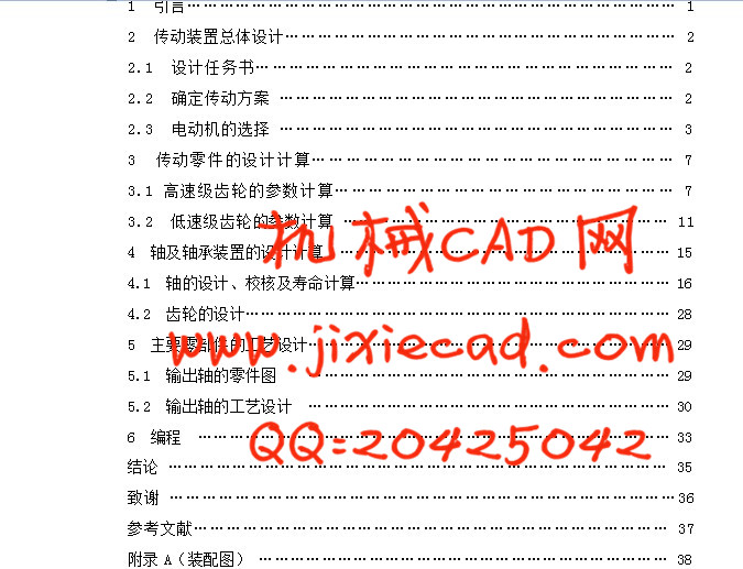 附录A(装配图) …………………………………………………………………… 38