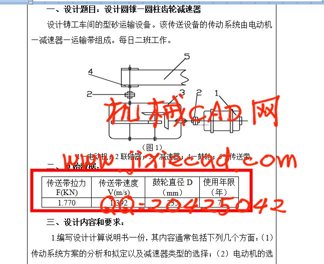 | 传送带拉力F(KN) | 传送带速度V(m/s) | 鼓轮直径D(mm) | 使用年限(年) |