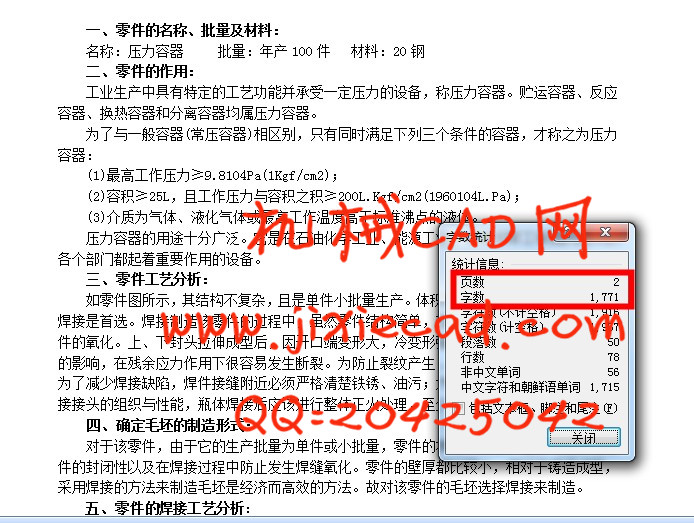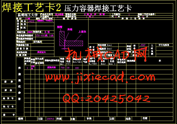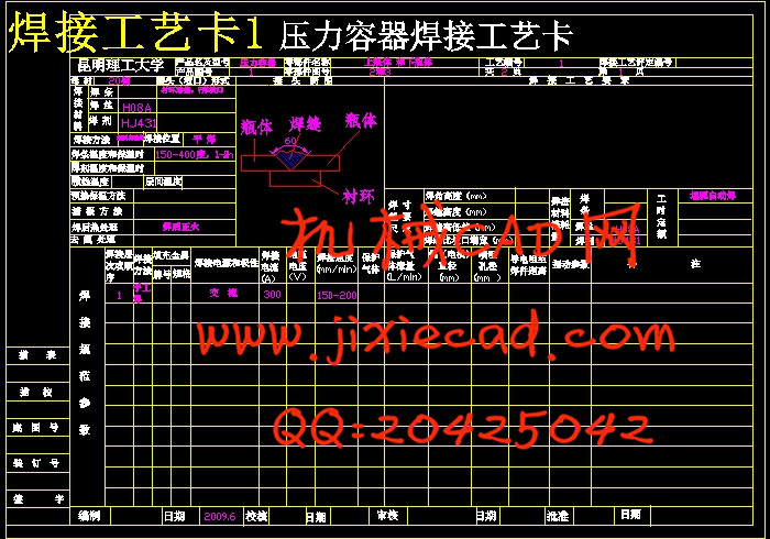 如零件图所示,其结构不复杂,且是单件小批量生产。体积较大,选用铸造明显不现实,焊接是首选。焊接制造该零件的过程中,虽然零件结构简单,在焊接过程中,主要考虑是零件的氧化。上、下封头拉伸成型后,因开口端变形大,冷变形强化严重,加上板材纤维组织的影响,在残余应力作用下很容易发生断裂。为防止裂纹产生,拉伸后应进行再结晶退火;