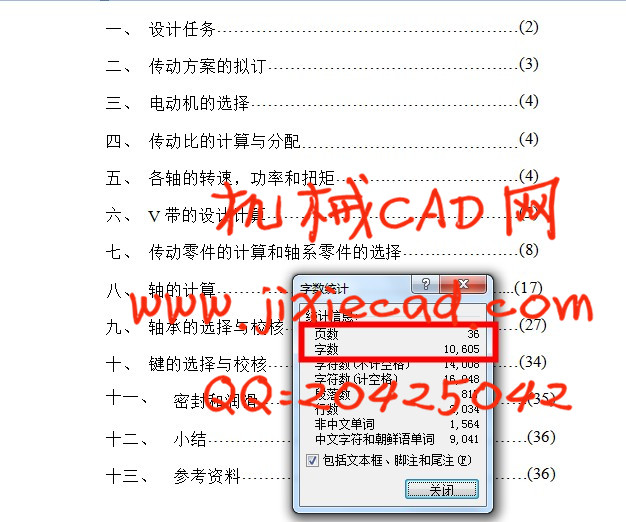 七、 传动零件的计算和轴系零件的选择…………………(8)