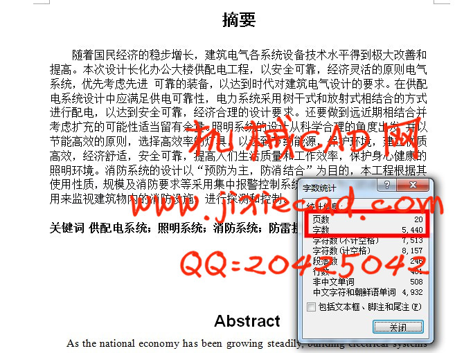 关键词 供配电系统;照明系统;消防系统;防雷接地系