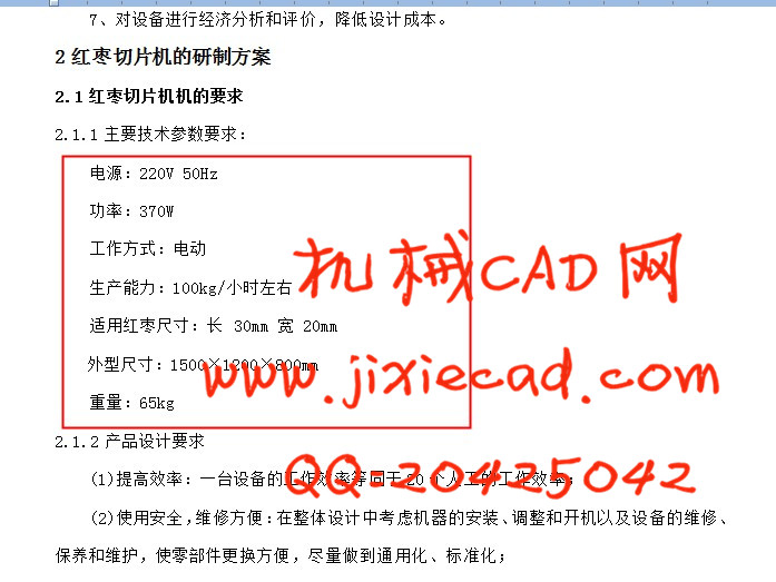 2.红枣切片机的研制方案 3