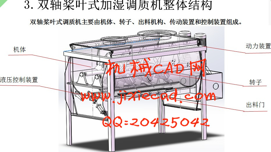 小于5%,最佳可达3%,每批混合时间为 30秒到60秒,显著缩短了混合周期,提高了混合精度,为促进这种高效混合机的发展及推广应用,本文将对卧式双轴桨叶式加湿调质机的结构特点工作机理及结构设计等作简介。