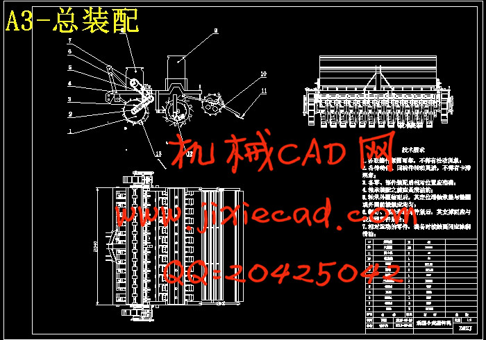 由于播种机播种质量的优劣直接影响到农作物的产量以及农产品的成本,因此研制高质量的播种机械是现代农业的迫切要求。尽管我国大部分地区早已实现播种机械化,但目前的播种机质量还不能满足高产的要求。现在大面积麦田普遍存在着植株疏密不匀,出苗参差不齐,单株个体之间性状也表现较大差异等问题,限制了小麦产量的进一步提高。生产实践证明,解决这一问题的关键在于实行均匀播种。本课题的目的是针对现有小麦播种机播种中存在缺苗断垄现象严重,存在疙瘩苗,设计制造了一种装配有窝眼式穴播器的小麦播种机一12行小麦网状播种机,该小麦播种机能够显著提高小麦播种的均匀性,达到了节种、增产的目的。