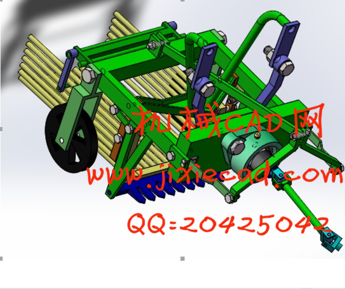 市场上的马铃薯收获装置挖掘效率低,费时费力。因为传统的马铃薯收获设备不能高效的进行挖掘收获,需要大量人力进行收获,而且工作后的土地成块状,马铃薯的拣拾还需要破碎土壤进行收获。因此根据这一情况,研制出了一种小型家用振动式马铃薯收获机。该振动式马铃薯收获机因其体积小、重量轻、结构简单,所以制造成本低,而且马铃薯挖掘效率高,只需要小型拖拉机进行牵引带动,就可以很好地进行马铃薯挖掘收获。