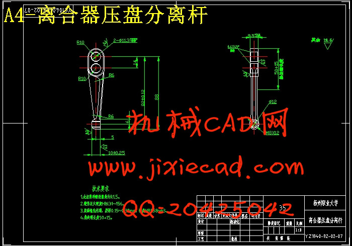 摘要:离合器依靠其主、从动部分的摩擦来传递动力且能分离的机构。YC1040低速载货汽车中针对多数摩擦离合器存在散热能力不足,摩擦片易磨损等缺点的现状,根据生产的实际情况和需要,依据经济、可靠、操作方便的原则,采用单片干式摩擦离合器,为保证其技术先进性和经济合理性,还采取了以下措施:(1)为使离合器保证结构简单,尺寸紧凑,散热良好,维修调整方便,从动部分转动惯量小,在使用时能保证分离彻底、接合平顺,选择采用单片盘摩擦片。(2)为保证结构简单、制造容易,保证结构简单,制造方便,考虑压紧弹簧的结构形式选用周置弹簧,压紧弹簧采用圆柱螺旋弹簧。(3)压盘的驱动方式选用凸块-窗孔式,采用3个分离杠杆,且分离杠杆保证足够的刚度,使其工作可靠。(4)分离轴承选用开式的推力球轴承,改进润滑措施后,解决了这类轴承润滑条件差、磨损严重、噪声大、可靠性差、使用寿命低等缺点,在保证工作可靠的条件下降低制造成本。