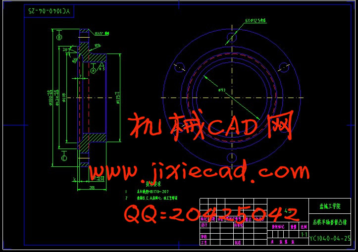 摘要:驱动桥采用普通非断开式驱动桥。它结构简单、造价低廉、工作可靠,广泛应用于各种载货汽车。其特点是桥壳是一根支撑在左、右驱动车轮上的刚性空心梁,而齿轮及半轴等所有的传动机件都装在其中。采用组合式桥壳的单级主减速器。单级主减速器代替双级主减速器可大大减小驱动桥的质量。其具有结构简单、质量小、尺寸紧凑及制造成本低等优点。差速器则采用对称式圆锥行星齿轮差速器。差速器壳装在主减速器从动齿轮上。结构简单、工作平稳、制造方便是选择它的主要原因。另外,采用可分式桥壳。整个桥壳由一个垂直结合面分为左右两个部分,每一个部分均由一个铸件壳体和一个压入其外端的半轴套管组成。该结构的桥壳制造工艺简单、主减速器轴承支承刚度好。
